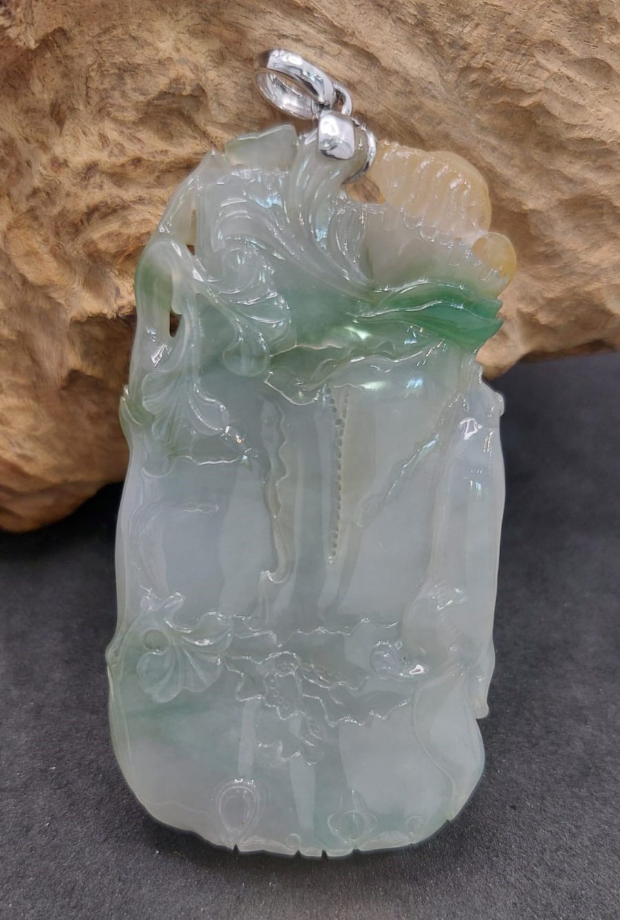 材質:精選優質翡翠,呈現出柔和的淡綠色,內部帶有自然的紋理,展現出天然的美感。