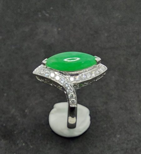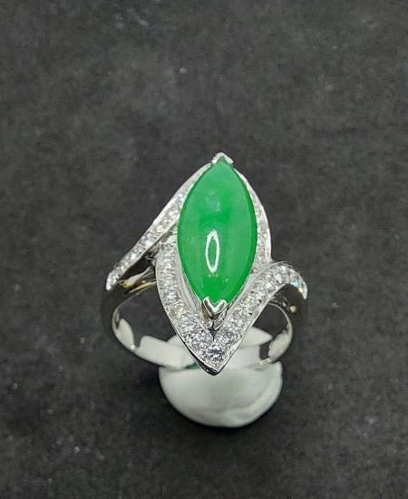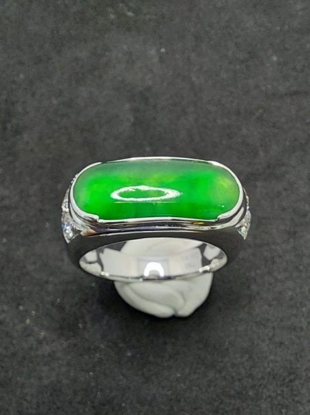中央寶石:中央鑲嵌著一顆綠色寶石,色澤鮮明且光滑。