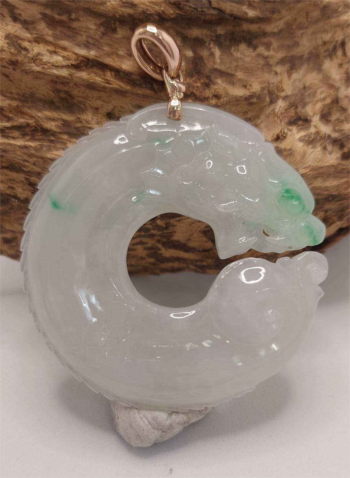 材質:優質翡翠,色澤飽滿,帶有自然的綠色紋理,視覺效果極佳。