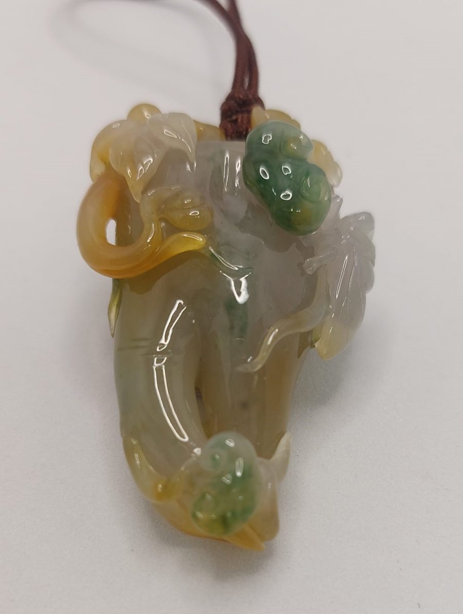 設計:掛墜雕刻出生動的自然元素,包含花卉或動物的形象,流暢的線條和細緻的細節展現出工匠的精湛技藝,象徵著生命與繁榮。