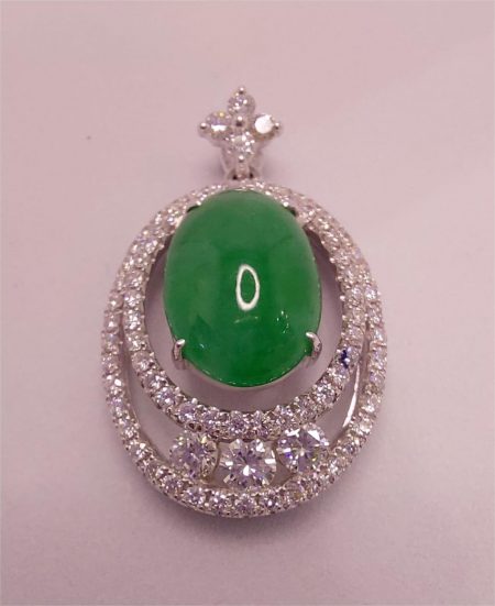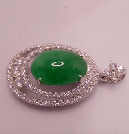材質:高質量翡翠,色澤均勻,透出自然的光澤,搭配閃耀的鑽石。
