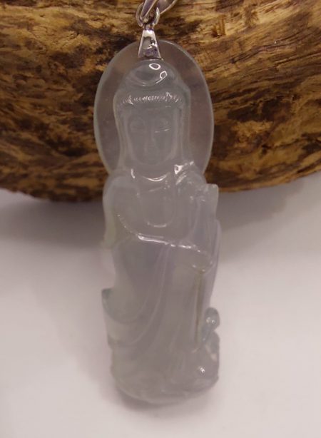 材質:選用優質翡翠,呈現出淡灰色,色澤均勻,紋理自然,展現出細膩的工藝。