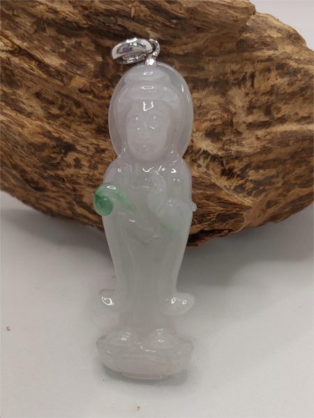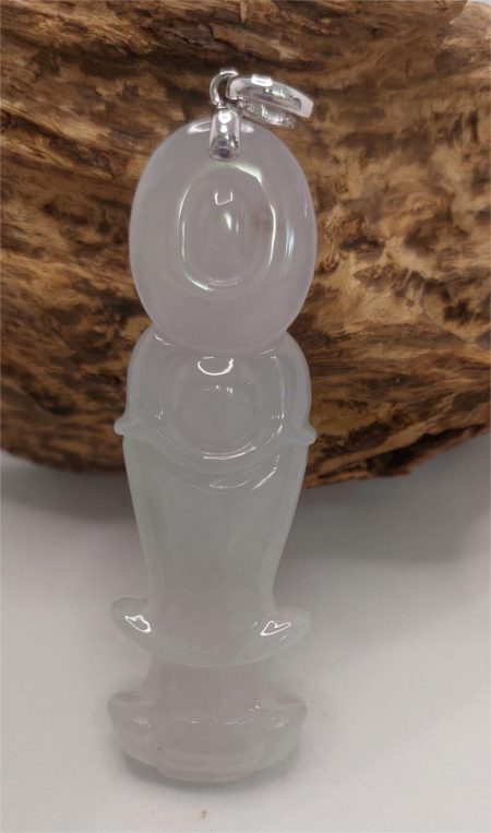 材質:選用優質翡翠,呈現出淡灰色,色澤均勻,紋理自然,展現出細膩的工藝。