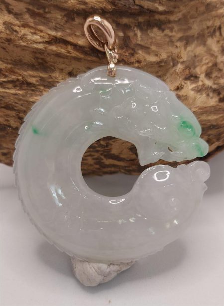 材質:主體為優質綠色翡翠,色澤飽滿,透亮自然,散發出迷人的光澤。搭配橙色和紅色的寶石增添了層次感。